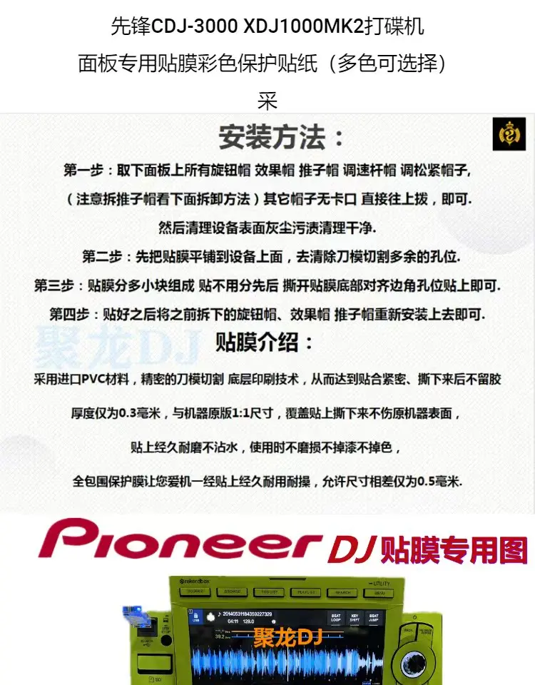 Película autoadhesiva de PVC Xdj1000mk2 Cdj3000, Panel de grabadora de disco Pioneer, película protectora dedicada para DJ, no máquina