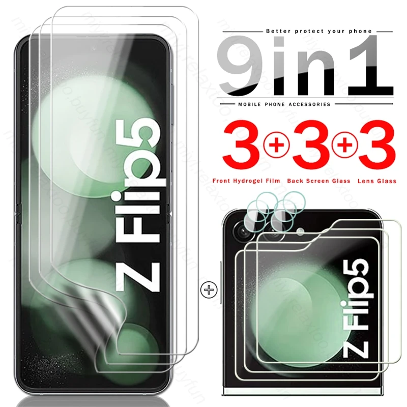 Película frontal de hidrogel suave 9 en 1 para Samsung Galaxy Z Flip5 5G Flip 5, Protector de pantalla trasera, cristal de cámara en Samung ZFlip5 ZFlip 5