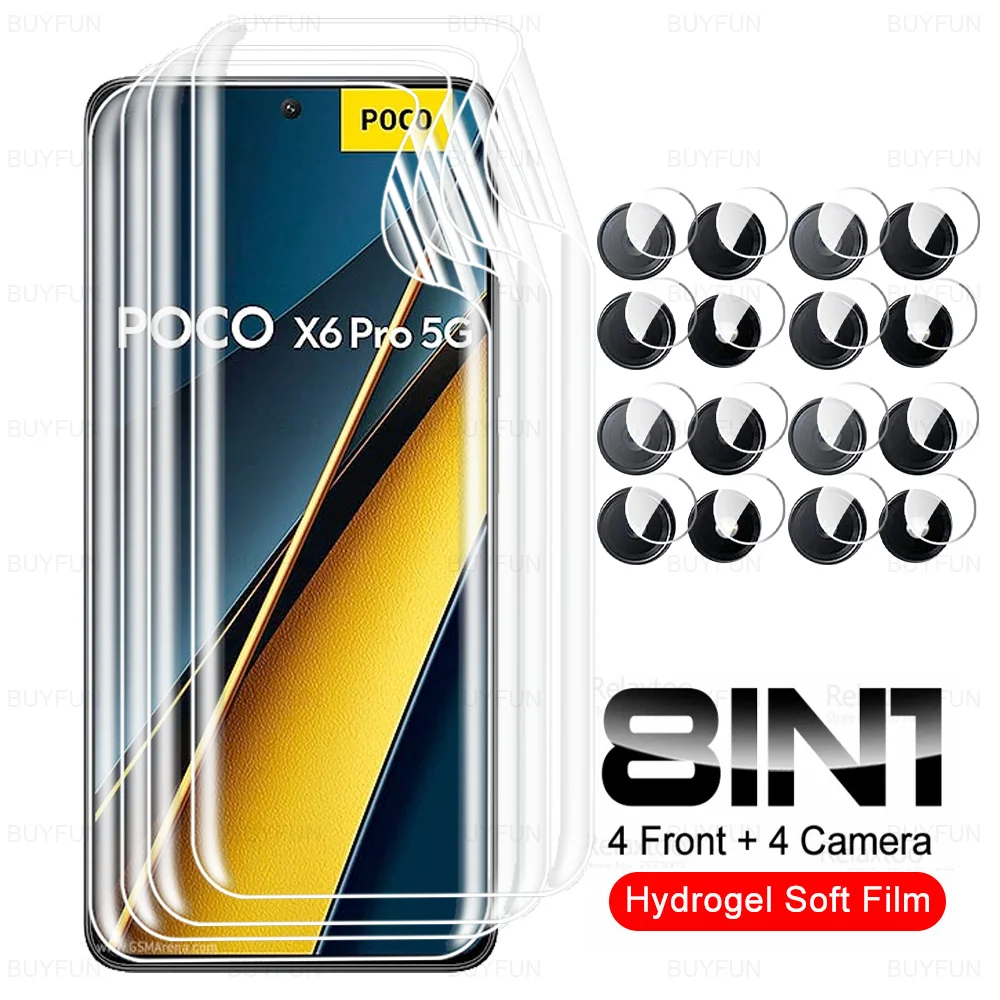 Película de hidrogel 8 en 1 para Xiaomi Poco X6 Pro, Protector de pantalla PocoX6 PocoX6Pro Pocco X6Pro Little X 6 5G, vidrio protector de cámara