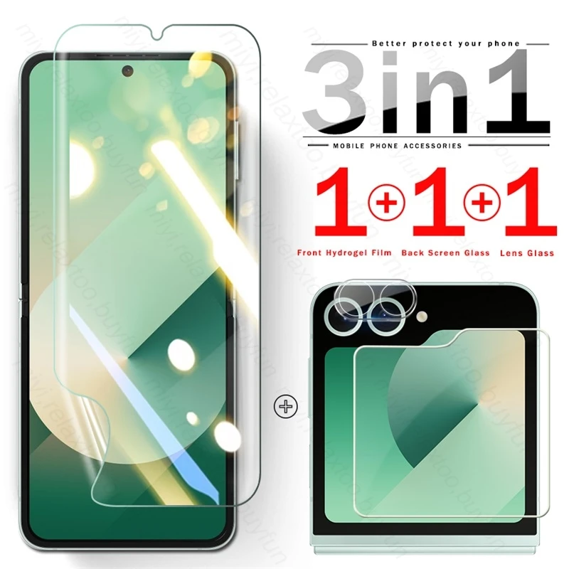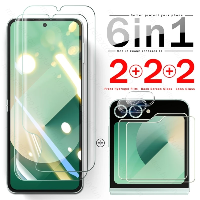 Película de hidrogel frontal 6 en 1 Samsun ZFlip 6, Protector de pantalla trasera, cristal de cámara 3D para Samsung Galaxy Z Flip6 Flip 6 ZFlip6 5G 2024