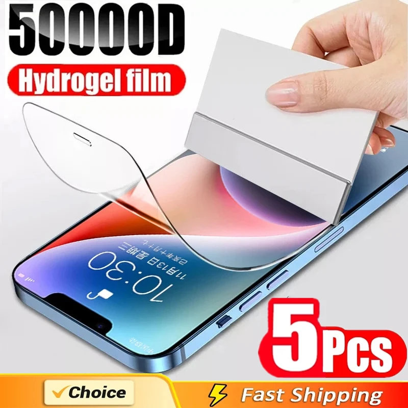 Película de hidrogel para IPhone, Protector de pantalla sin cristal para modelos 14, 11, 12, 13, 15 Pro Max, 13 Mini, XS Max, X, XR, 14, 15, 7, 8 Plus, SE, 5 unidades