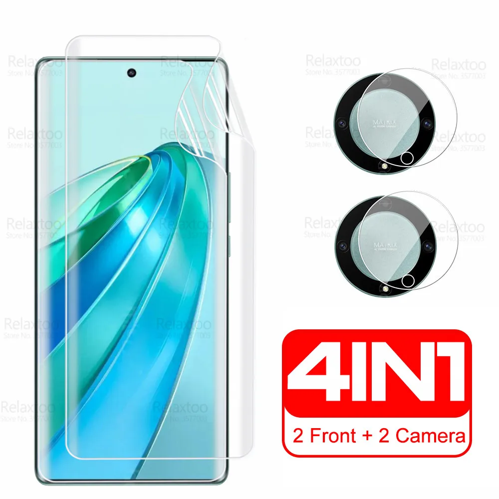 Para Honor X9A película de hidrogel 4 en 1 Protector de pantalla de vidrio de cámara en HonorX9A Hnor Xonor X9A X 9A X9 A 5G 2022 película protectora suave