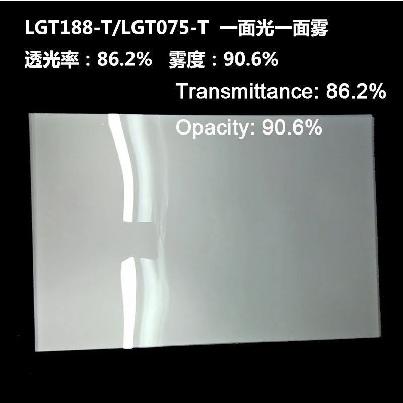 Película de difusión para retroiluminación de cristales líquidos Ver el tamaño del producto y el grosor utilizado varían.Generalmente, la caja de luz de la caja de luz es de 0,1 mm y 0,125 mm, y la película de difusión de 0,21 mm de espesor se usa generalmente en pantallas LCD de televisores y portátiles.
