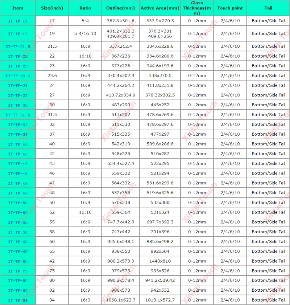 Súper ventajas para la lámina táctil capacitiva de 32 pulgadas y 20 puntos: