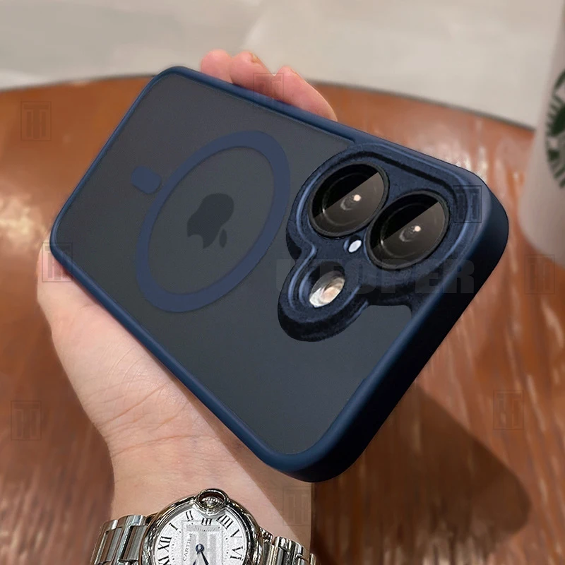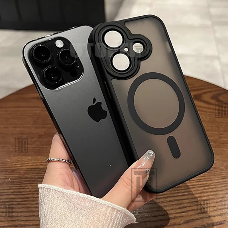 Comprar Película de lente avanzada a prueba de golpes, funda protectora para iPhone 16, 15, 14, 13, 12, 11 Pro Max, 16 Plus, cubierta magnética mate translúcida Magsafe