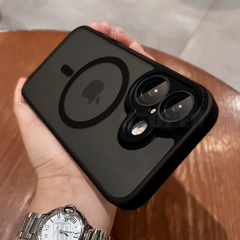 Funda protectora a prueba de golpes con película de lente avanzada para iPhone 16 15 14 13 12 11 Pro Max 16 Plus, funda magnética translúcida mate Magsafe