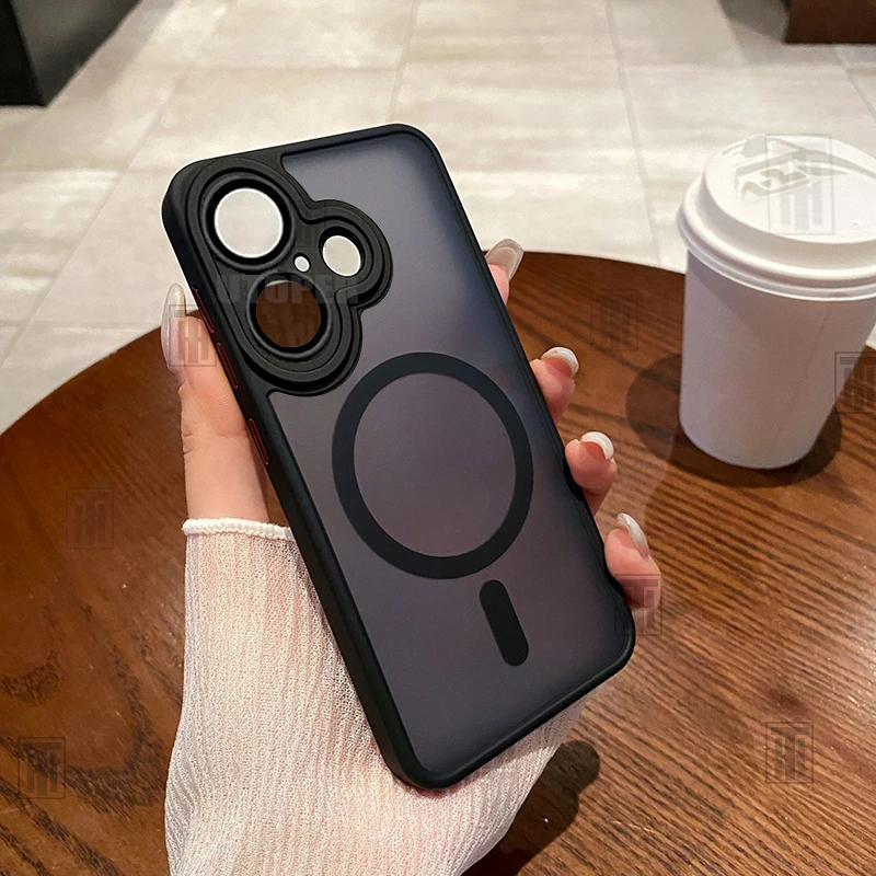 Comprar Película de lente avanzada a prueba de golpes, funda protectora para iPhone 16, 15, 14, 13, 12, 11 Pro Max, 16 Plus, cubierta magnética mate translúcida Magsafe