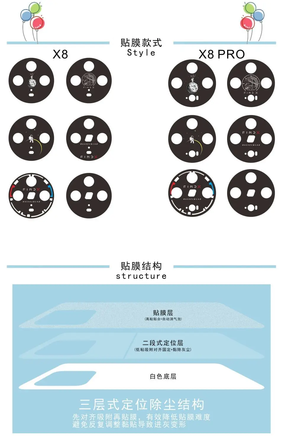 Película de lente para OPPO Find X8 Pro, 3 uds., película de cámara perforada mate impresa FindX8Pro, pegatina suave, creativa, negra, resistente a los arañazos