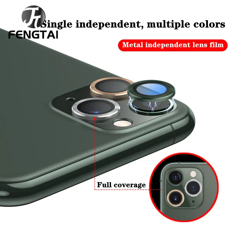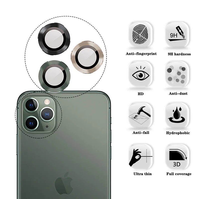 Comprar Película protectora de cámara para IPhone 11 Pro Max, cristal templado, anillo de Metal, tapa de cristal