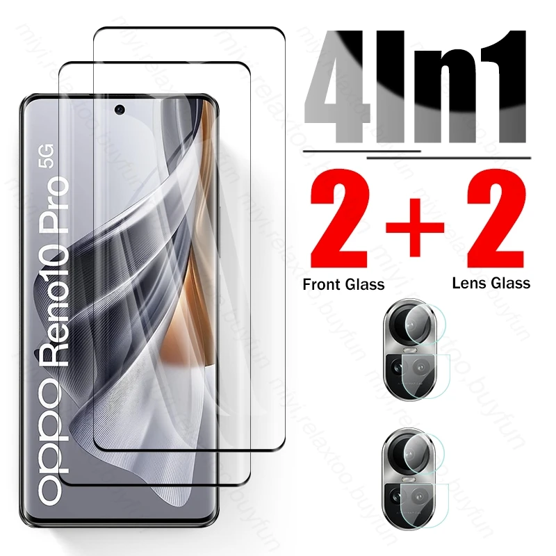 Para Oppo Reno10 Pro 5G Glass 4In1 19D Vidrio protector curvo Orro Reno 10 Pro Reno10 Pro 5G Película protectora de pantalla de lente de cámara