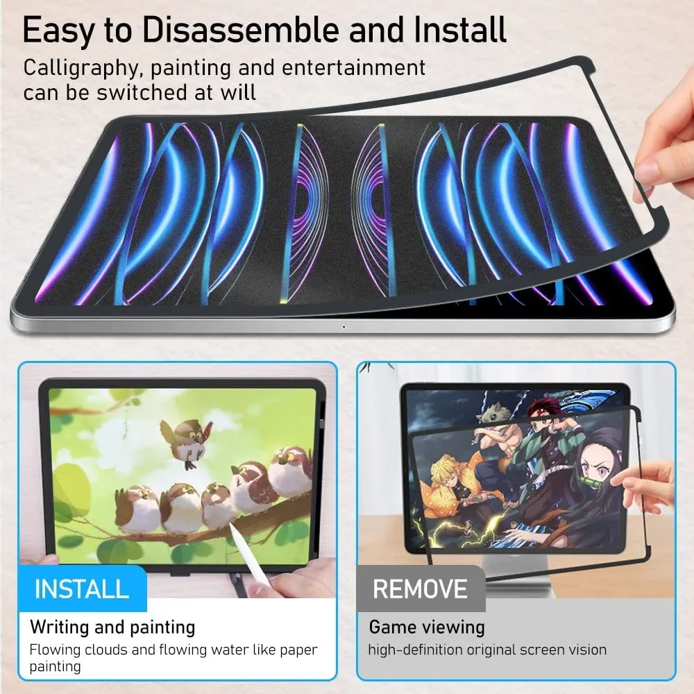 Protector de pantalla Paperfilm recubierto con una sensación adecuada de amortiguación, texturizado como papel de boceto, que le proporciona la sensación natural del papel. La sensación de escritura delicada, las partículas más finas y densas, reducirán el desgaste de la punta del lápiz. Alta respuesta sin demora, es el mejor socio para usar el iPad en notas de estudio, creación de arte y trabajo.