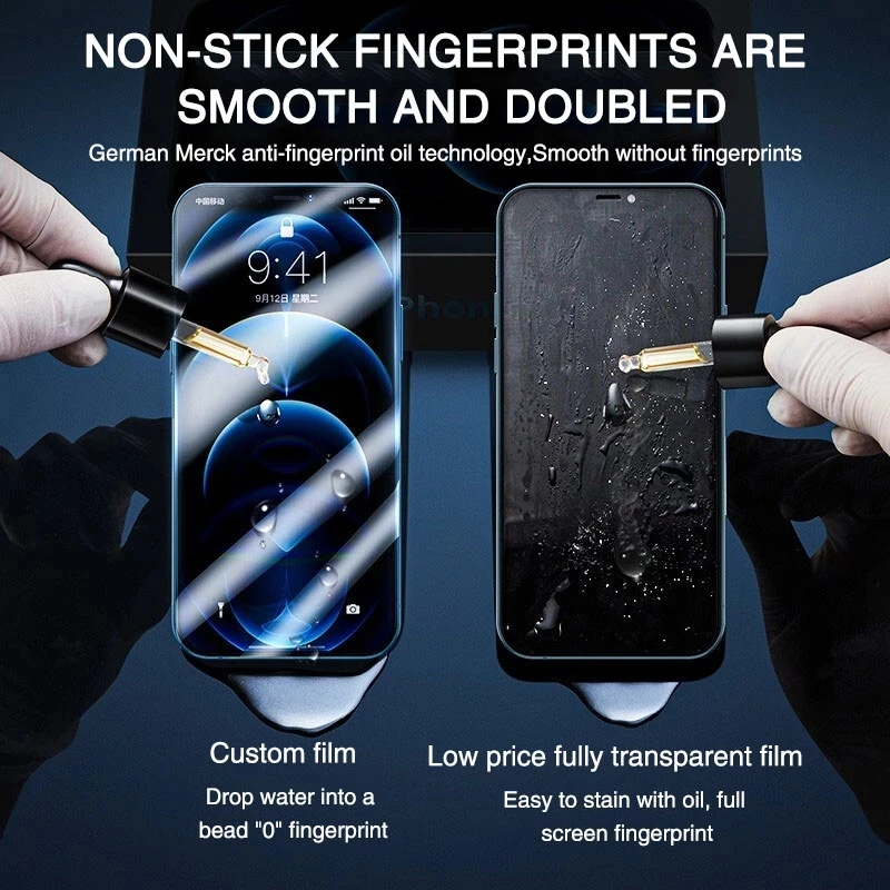 La protección de huellas dactilares es exagerada. El tamaño que me queda sobrepasa demasiado los bordes de la pantalla del dispositivo, por eso el espacio entre el vidrio y la pantalla necesita ser llenado con silicona por todas partes. Es simplemente vidrio de calidad media.