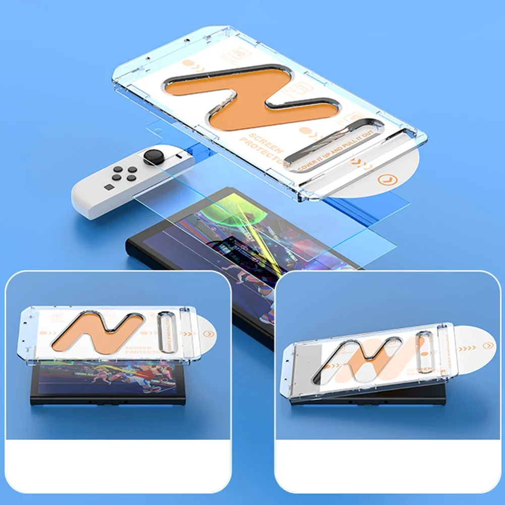 Comprar Película templada de pantalla a prueba de explosiones, eliminación automática de polvo con limpieza de polvo, instalación de casa para Nintendo Switch/Switch OLED, 1/2 Uds.