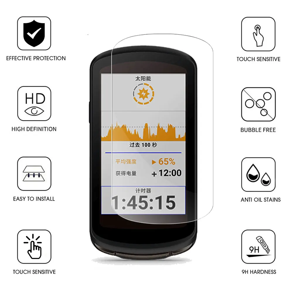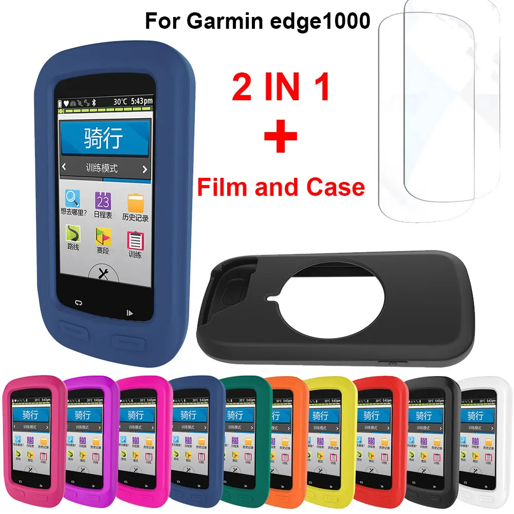 Película de vidrio + funda protectora de silicona para Garmin Edge 1000, cubierta protectora para ordenador de bicicleta, parachoques anticolisión suave