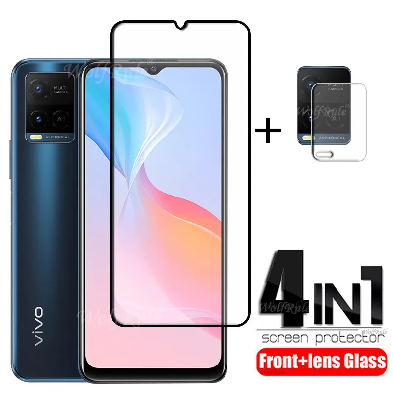 Comprar Película de vidrio templado 4 en 1 para Vivo Y21, película de teléfono con pegamento completo 9H HD, Protector de pantalla para Vivo Y21S Y21