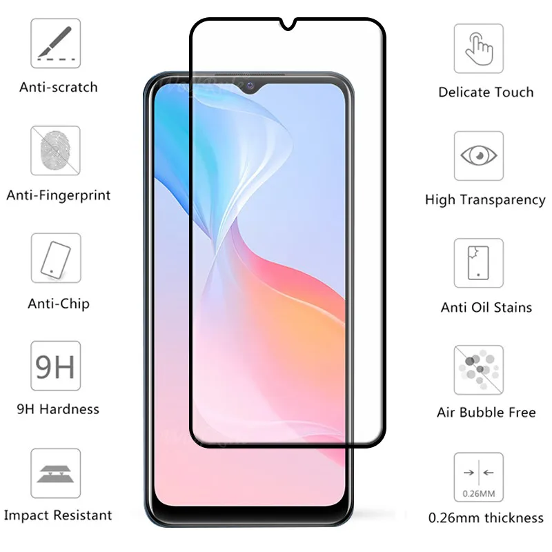 Comprar Película de vidrio templado 4 en 1 para Vivo Y21, película de teléfono con pegamento completo 9H HD, Protector de pantalla para Vivo Y21S Y21