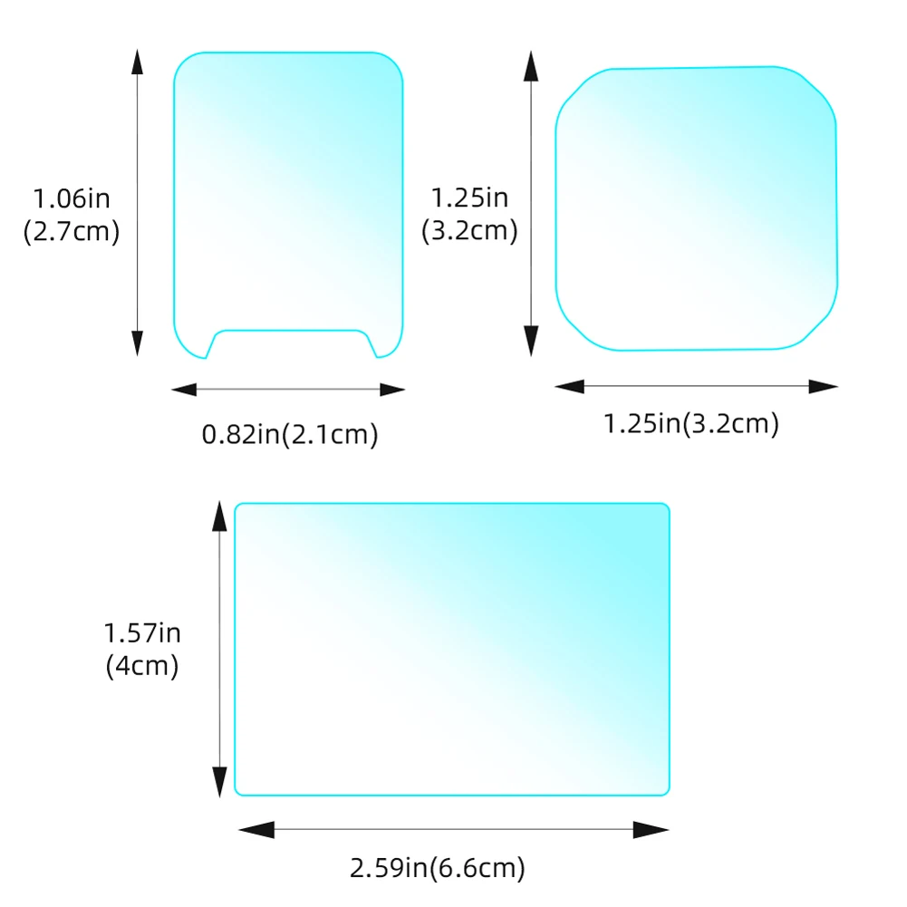 Tamaño del producto: 66,00x40,00x0,50 mm/2,6x1,57x0,02 pulgadas (película de pantalla trasera), 32*32*0,5 mm (película de lente), 27*21*0,1 mm (película de pantalla frontal)