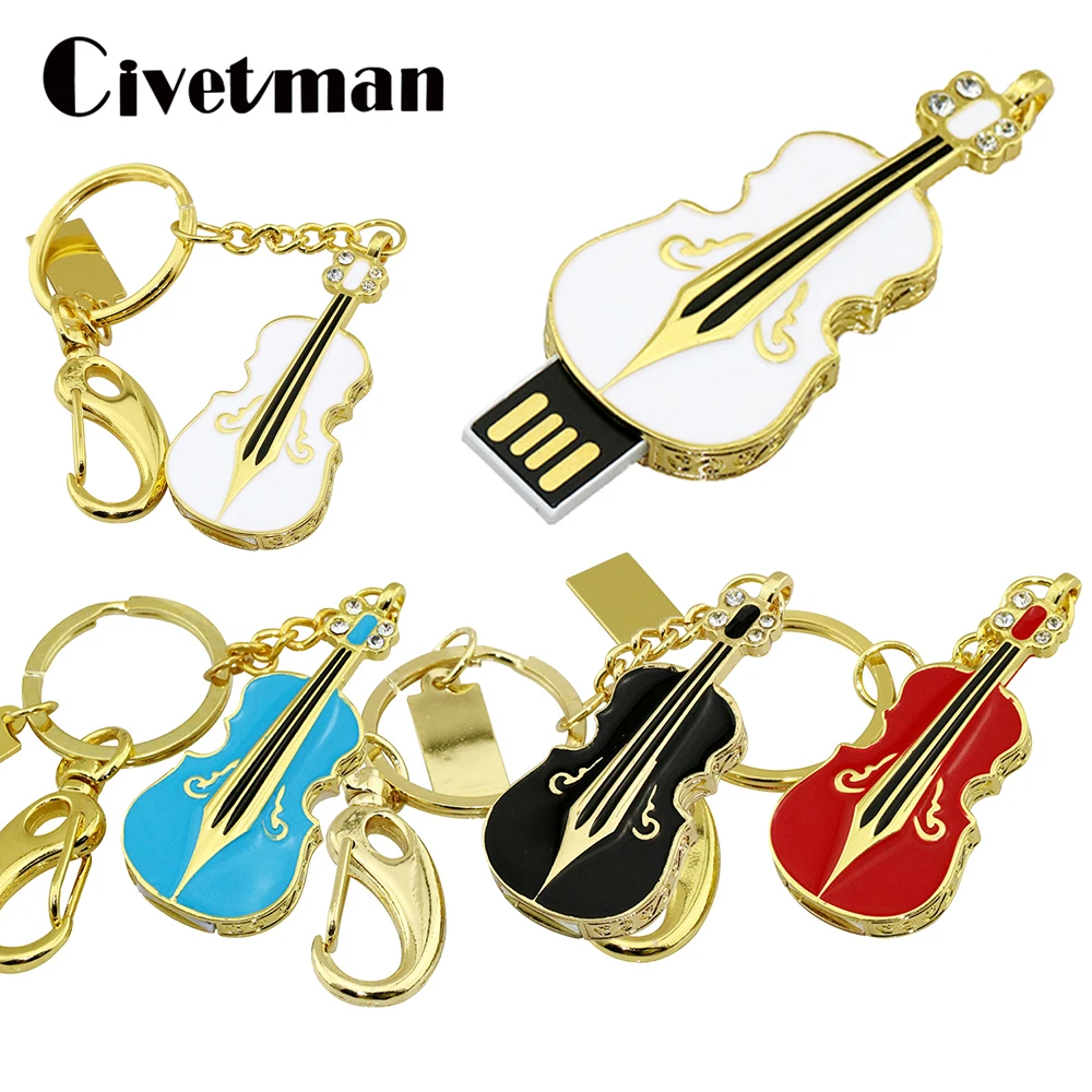 Comprar Pen Drive de Metal, llavero de 4GB, 8GB, 16GB, 32GB, 64GB, 128GB, unidad Flash USB, Pendrive de Violín de cristal, resistente al agua, memoria USB