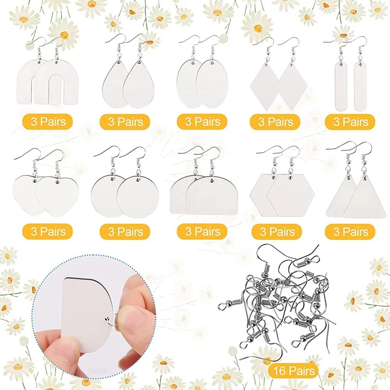 Contenido del paquete: El juego incluye 60 aretes en blanco de sublimación y 60 accesorios correspondientes.¡Cantidad suficiente para satisfacer sus diferentes necesidades de fabricación de joyas y brindarle más diversión de bricolaje!