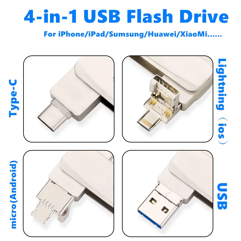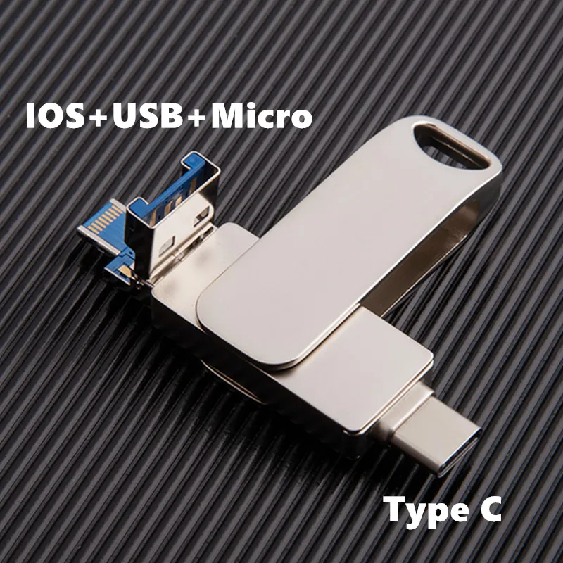 Comprar Pendrive 4 en 1 para Iphone, unidad Flash USB 3,0 de 256GB para IOS, iPad, PC, plata, OTG, tipo C, 128GB, 64GB, 32GB, 16 Memory stick
