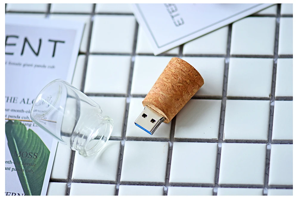 Comprar Pendrive de corcho de madera, botella de mensajero, memoria extraíble usb 2,0, botella de vidrio, 30 piezas, 16GB, 32GB, 64GB, novedad