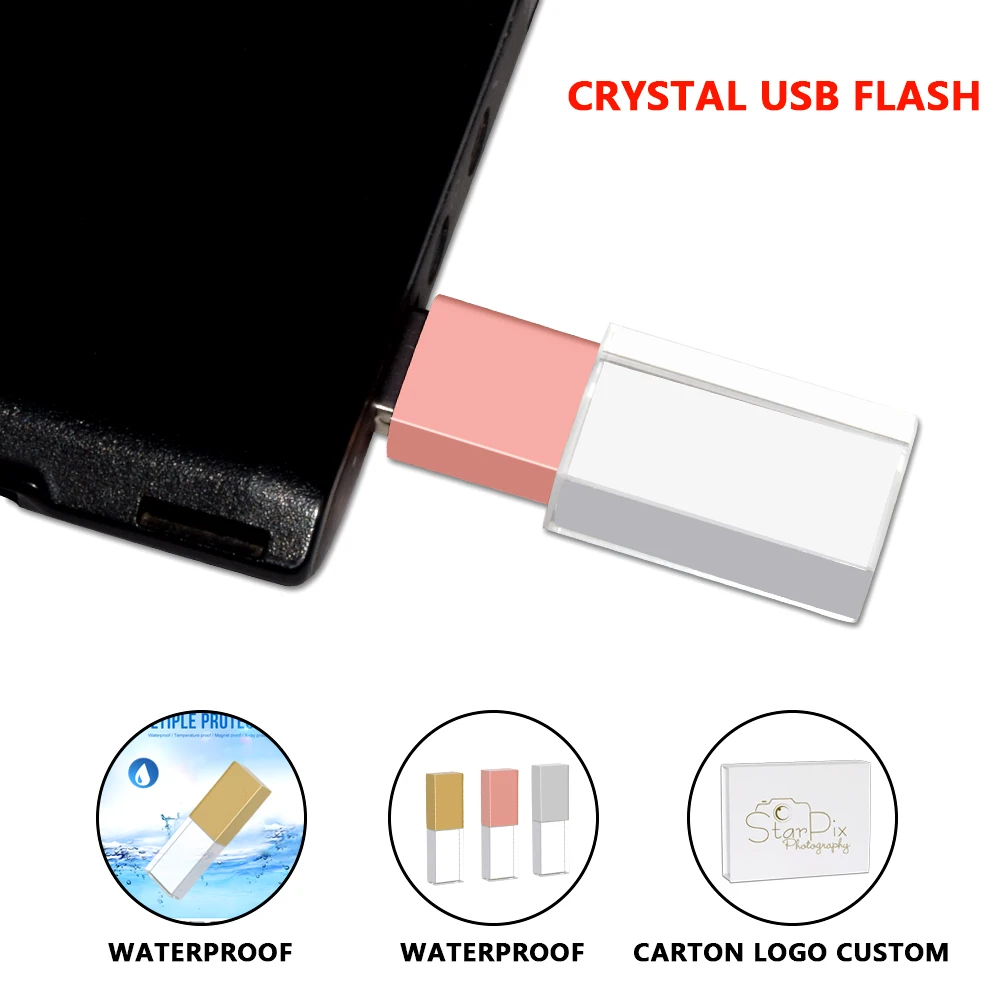 Comprar Pendrive de estilo cristalino para regalo, 10 unidades por lote, 4GB, 16GB, 32GB, 64GB, 128GB, logotipo gratis