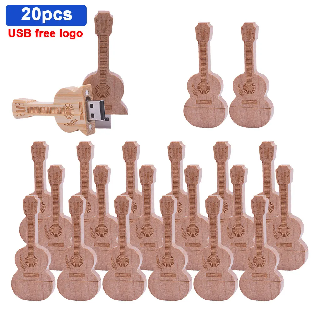 Comprar Pendrive de guitarra de madera, memoria flash USB, 4GB, 8GB, 16GB, 32GB, 64GB, logotipo personalizado gratis, regalos de música, 20 unidades por lote