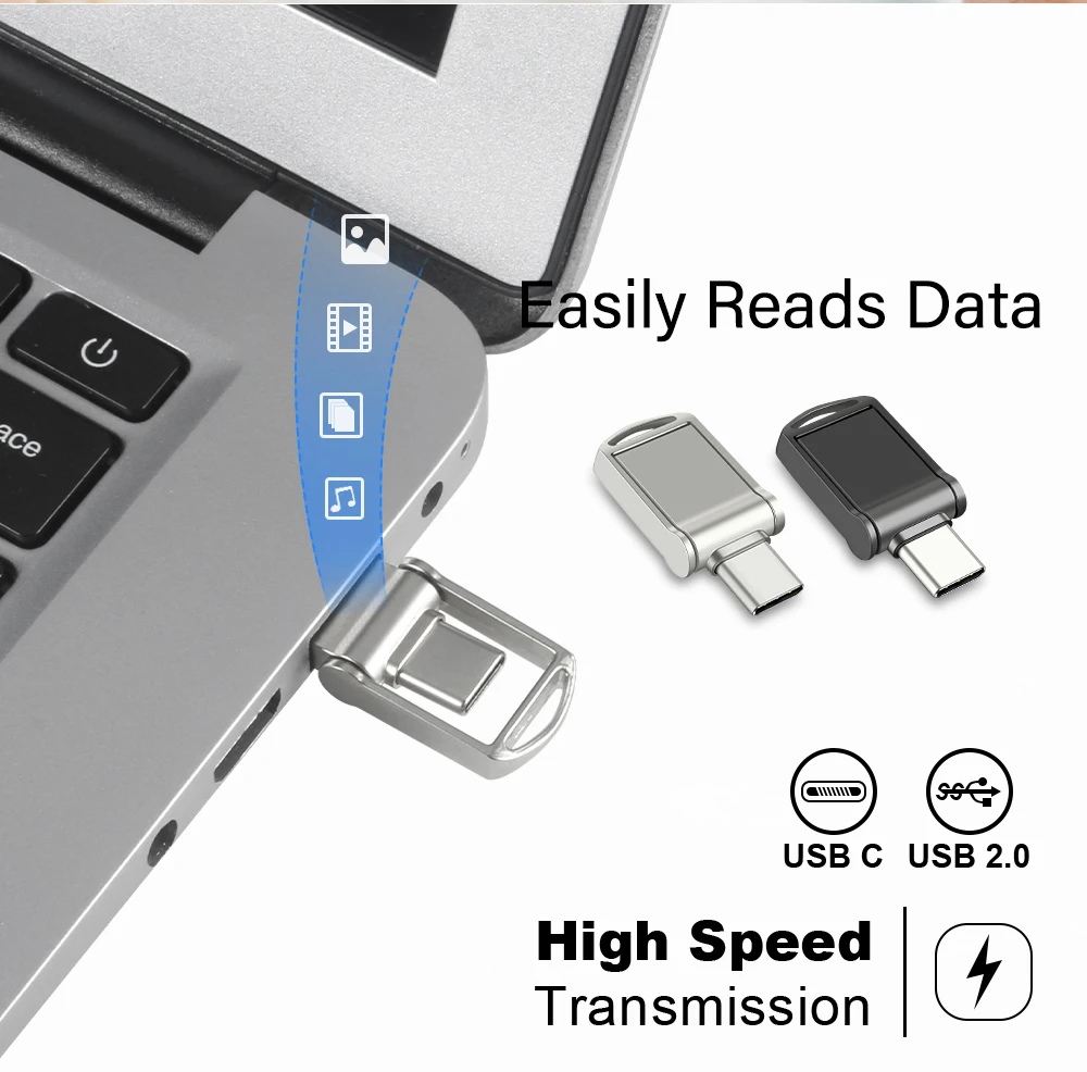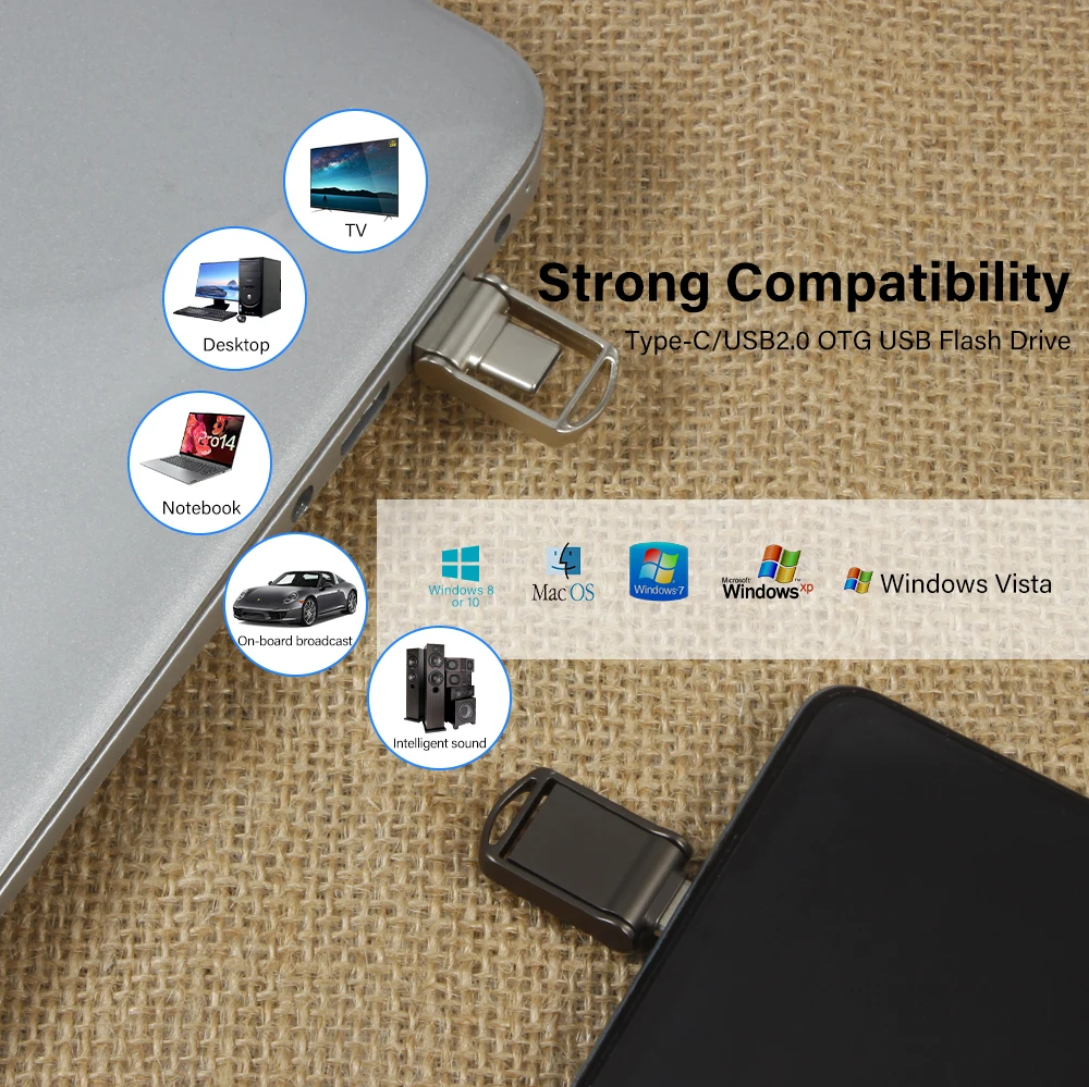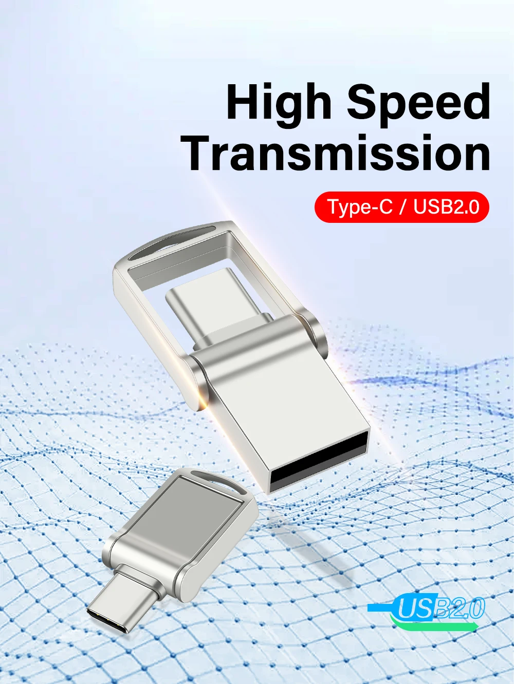 Comprar Pendrive de TYPE-C OTG de Metal, unidad Flash USB 2,0 de capacidad Real para teléfono móvil, logotipo personalizado gratis con llavero, Memory Stick de 64GB/32GB