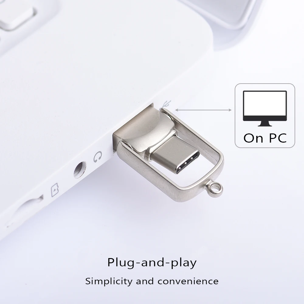 Comprar Pendrive USB con logotipo personalizado 2 en 1, unidad Flash Mini de Metal de 128GB, 64GB, tipo C, 32GB, 16GB, 8GB, 4GB, regalo creativo