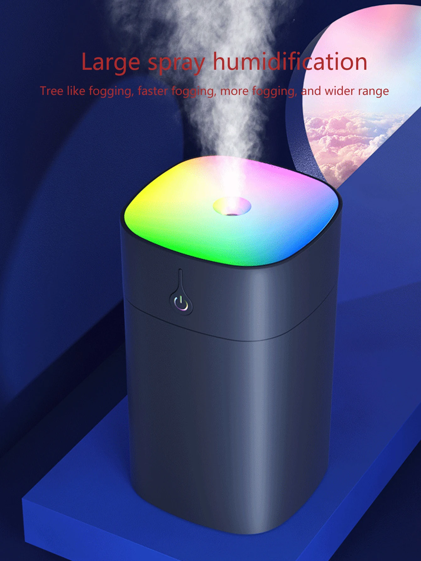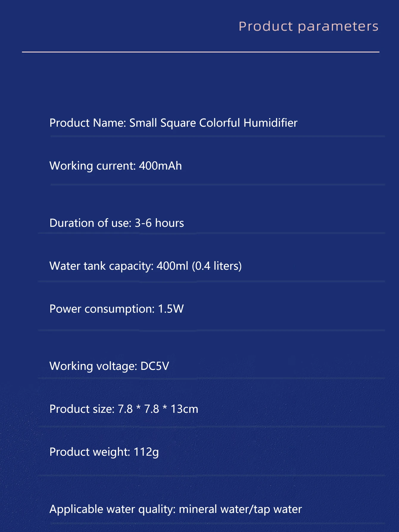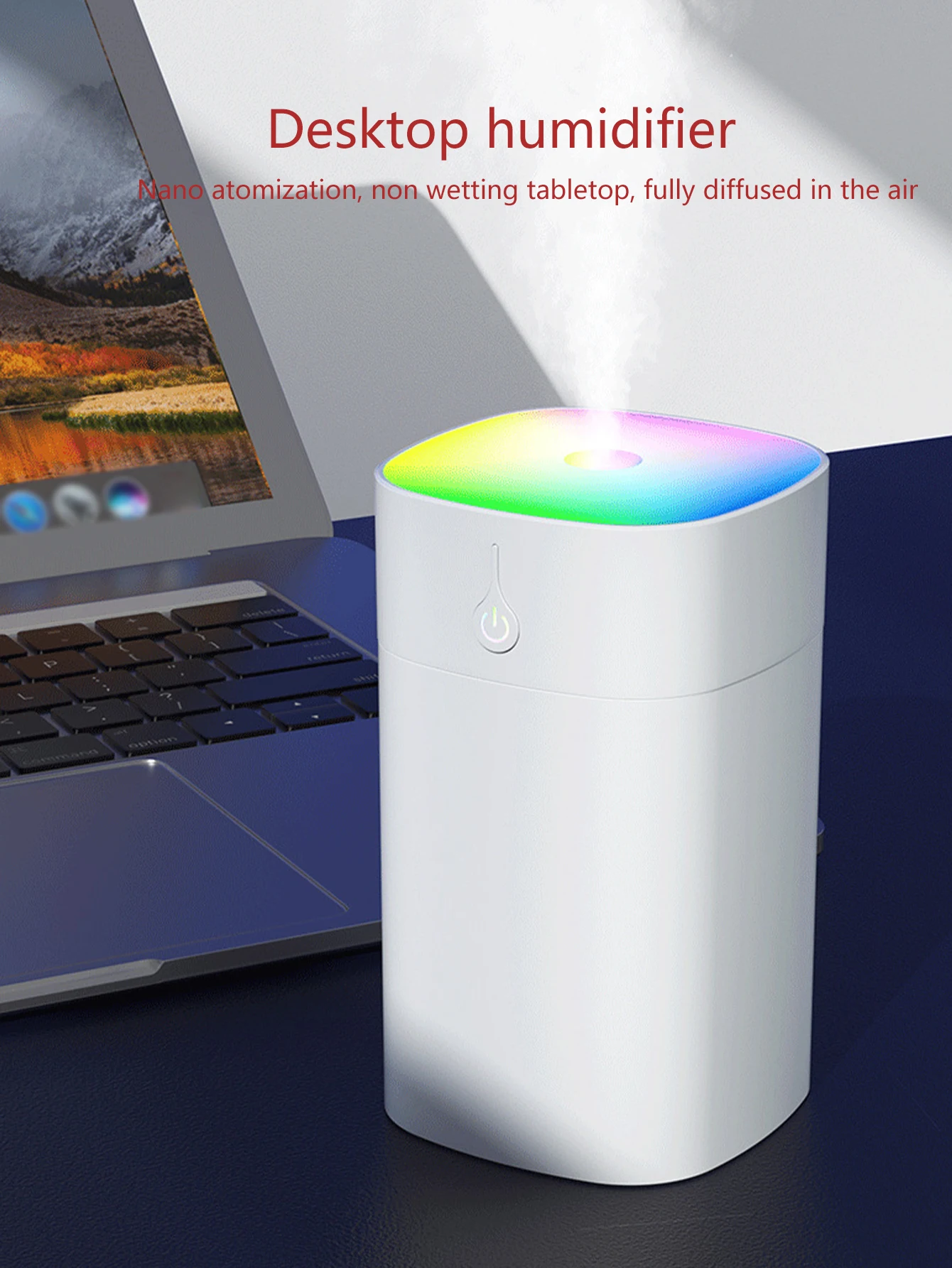 Pequeño humidificador de taza de luz de color cuadrado, puede cambiar la forma de pulverización, pequeño humidificador portátil, adecuado para escritorio/coche