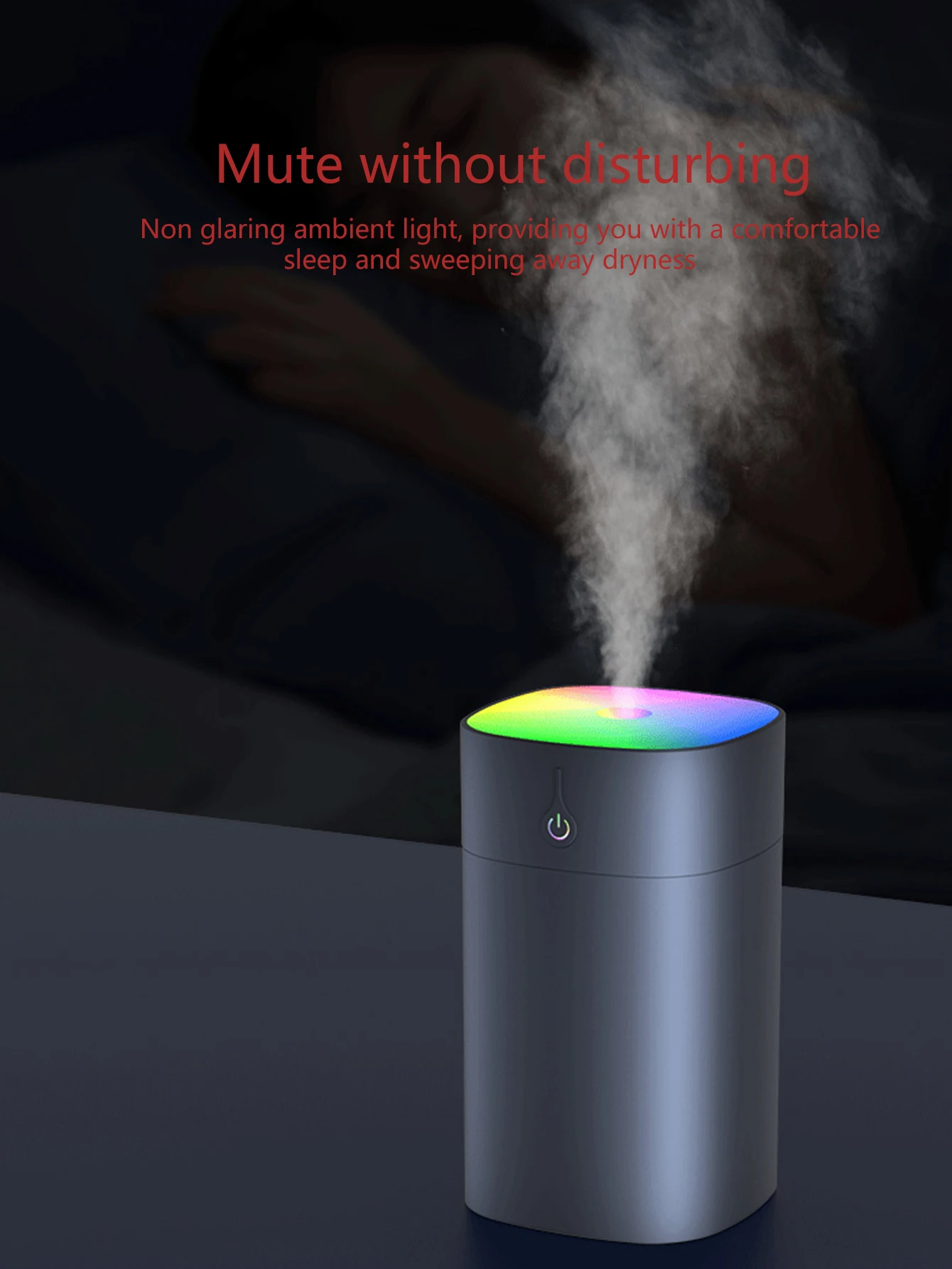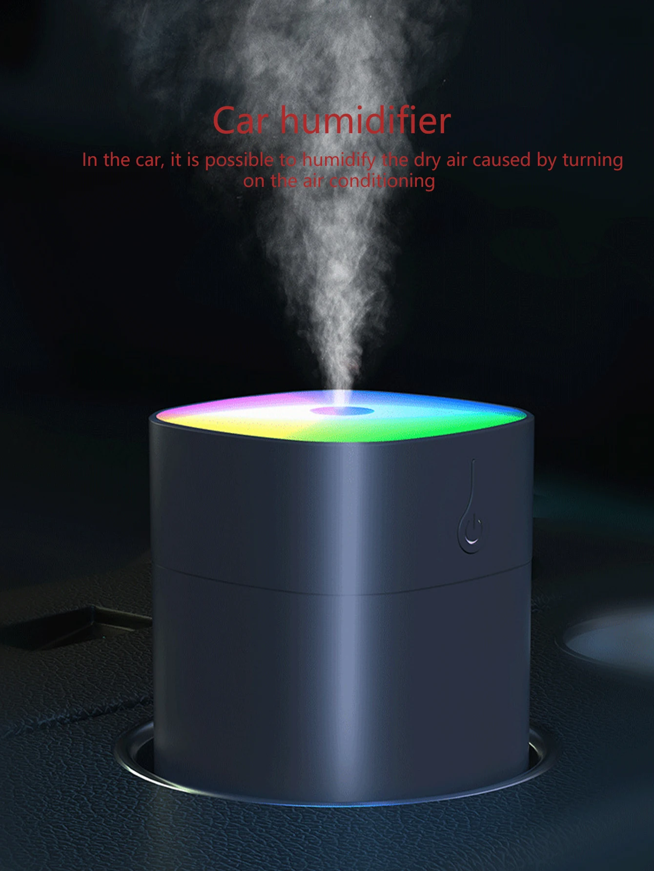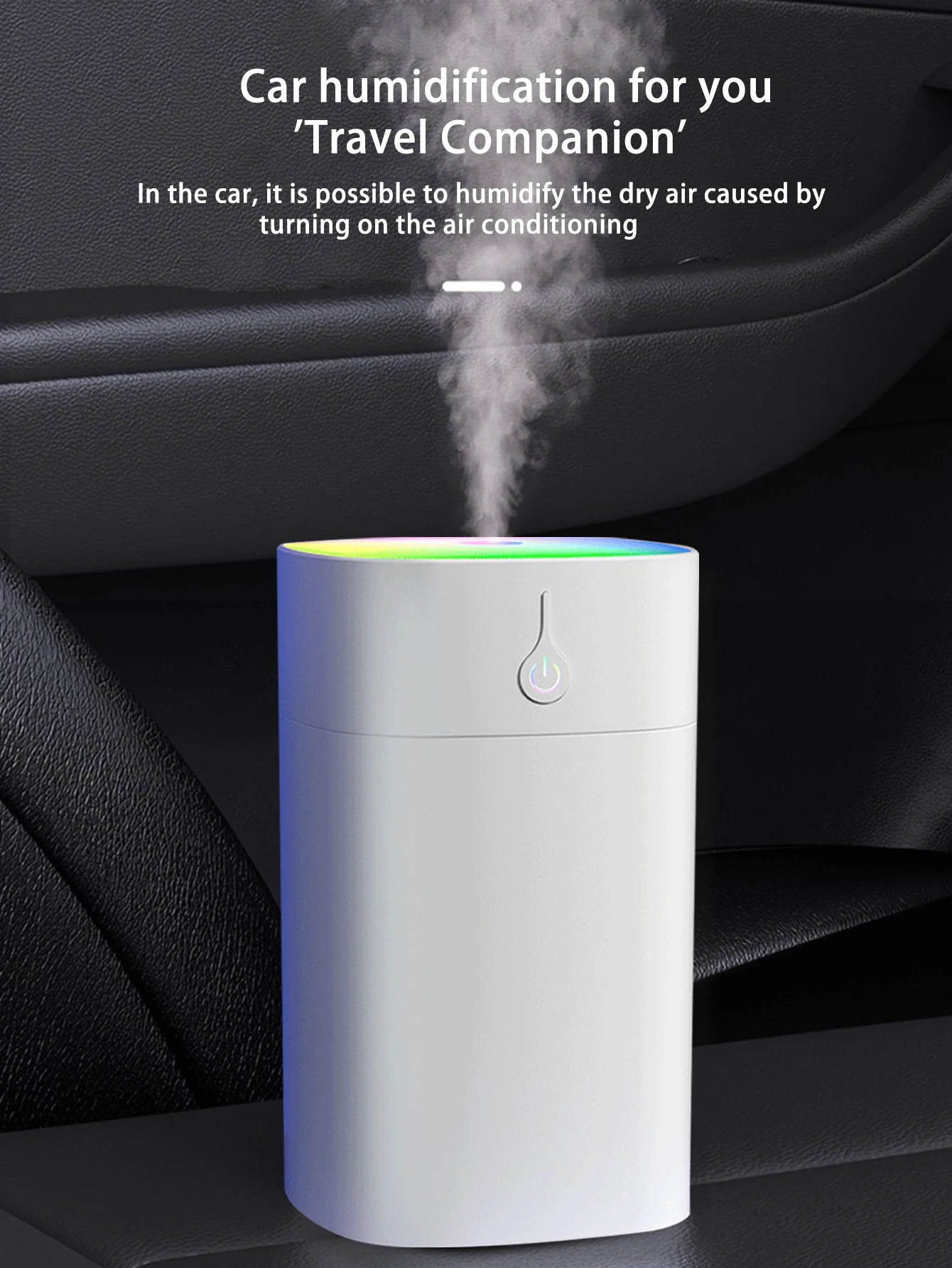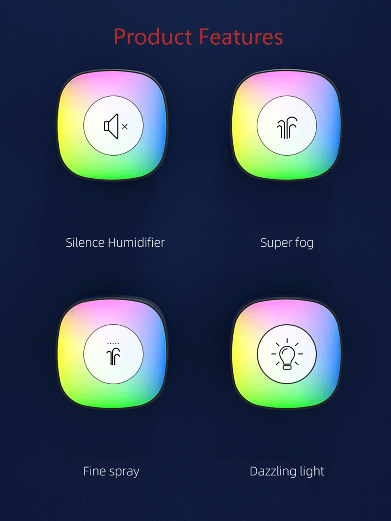 Pequeño humidificador de taza de luz de color cuadrado, puede cambiar la forma de pulverización, pequeño humidificador portátil, adecuado para escritorio/coche