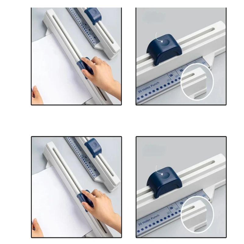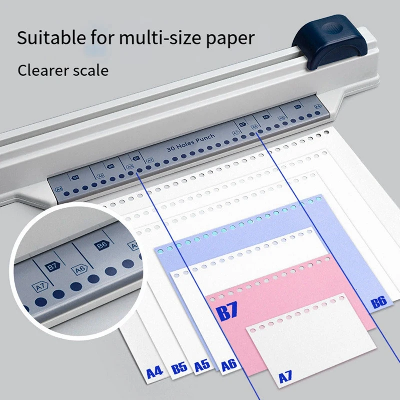 Comprar Perforadora de hojas sueltas de 30 agujeros, bobina Toroidal de empuje manual para el hogar, Metal azul y blanco y plástico para A4, B5, A5, perforadora de facturas de oficina, 1 piezas