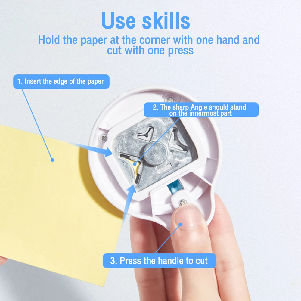 Características:1. Puede cortar 5 hojas de papel, puede cortar varios tipos de papel, como fotos/tarjetas/películas.2. Borde de corte de metal, corte rápido y uso duradero.3. Material ABS de superficie, respetuoso con el medio ambiente y seguro, ligero y duradero.4. Fácil de presionar con un dedo, corte simple, conveniente y rápido.5. 3 en 1, con múltiples opciones de arco redondeado para satisfacer diferentes necesidades.6. La cubierta inferior puede almacenar residuos de papel triturado, y al abrir la cubierta inferior puede verterlo para una fácil limpieza.Especificaciones:Tamaño del producto: 8,2*7,1*3,5 cmColor: Azul/rosaLista de embalaje: 1 * Redondeador de esquinas