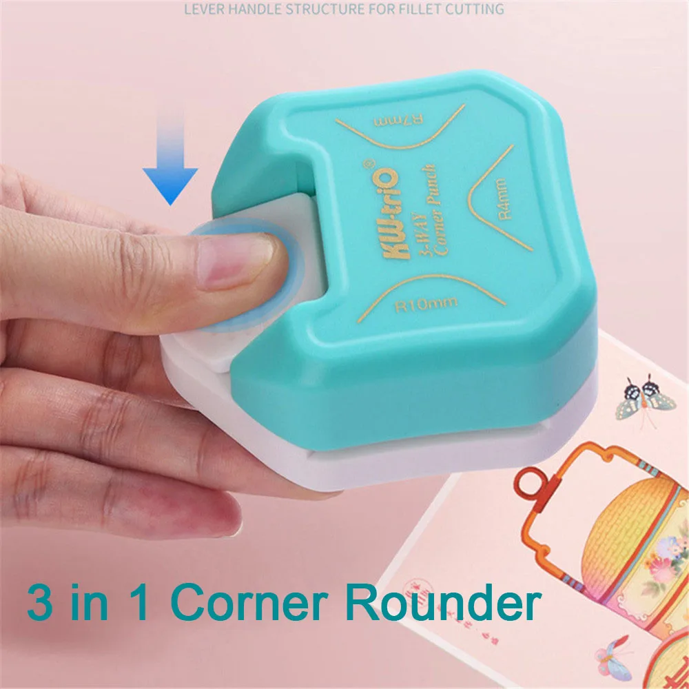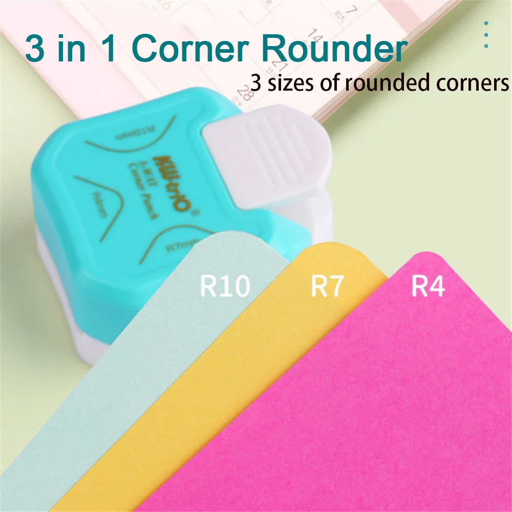 Comprar Perforadora redondeadora de plástico 3 en 1 para tarjetas, Mini recortadora de esquinas, R4/R7/R10mm, cortador de papel DIY, perforadora para álbum de recortes