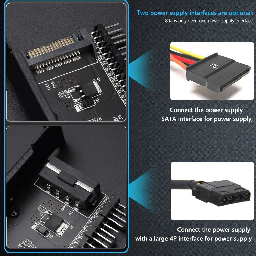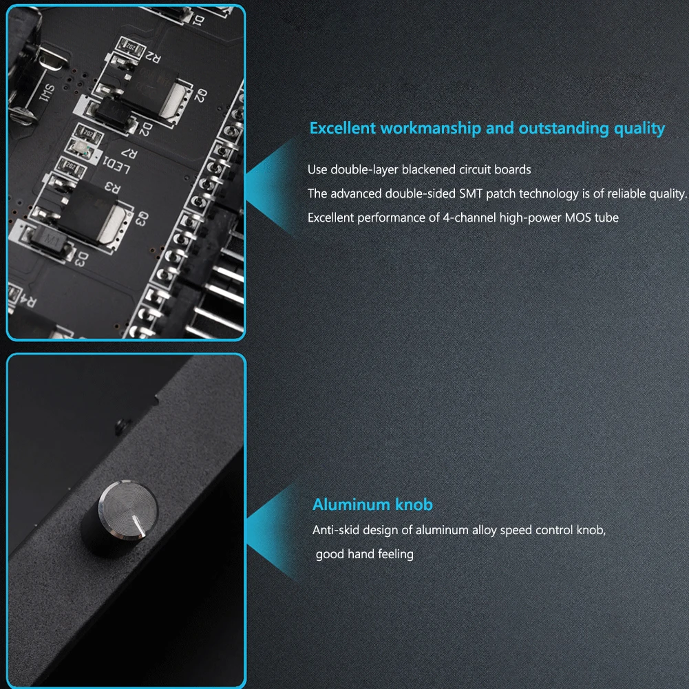 Comprar Perilla de controlador de velocidad de ventilador de 12V, 4 pines, 3 pines, 8 vías, regulador Universal de ordenador, divisor, carcasa de PC, Hub de ventilador de refrigeración, fácil de instalar