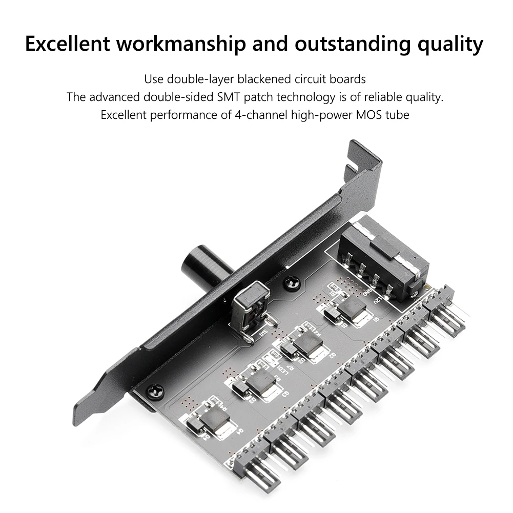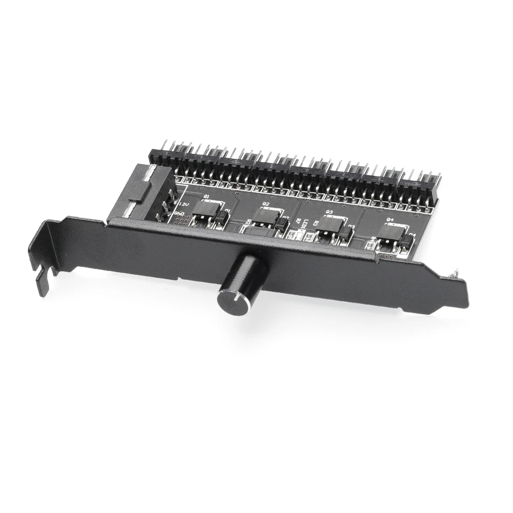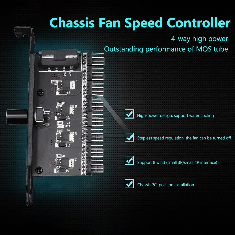 Universal Computer Regulator CPU Hub Splitter Cooler Speed Controller Adapter PC Case Cooling Fan Hub Feature: 1.Aluminum alloy knob: aluminum alloy speed control knob anti-skid design, good feel. 2.Power supply interface: large 4PIN D-type interface (4 pins side by side) auxiliary power supply. 3.Control 8 fans at the same time: support fans with small 3P/small 4P interface, can connect 8 fans at the same time. 4.Excellent workmanship and outstanding quality: Double-layer blackened circuit boards are selected, and the advanced double-sided SMT patch technology is of reliable quality. 4-way high-power MOS tube with outstanding performance. 5.Chassis PCI position installation: The governor is installed at the PCI position at the rear of the chassis. Easy to install, compact and does not take up space. 6.Please pay special attention to the fact that a single channel does not support fans larger than 1A. For violent fans with high power and high speed, please do not consider this hub. Specification: Product Name: Manual Chassis Fan Speed Controller Voltage regulation range: 0v-12v Connectable fans: 8 fans Adjustment method: manual knob adjustment Installation location: Chassis PCI location Power supply interface: large 4PIN D-type interface (4 pins side by side) auxiliary power supply Can support: small 3pin/large 4pin fan Product weight: about 50 grams Product size: about 14*10*3cm About installation: The package comes with screws fixed at the PCI position. Please fix the governor at the PCI position during installation. The knob adjustment principle is to adjust the input voltage. Some fans support 7V voltage to start, while some can only start at 12V, so When adjusting, some fans will have a virtual position phenomenon (similar to rotating a section of the fan speed without response or not rotating), this is a normal phenomenon and not a product quality problem, please pay special attention. Note: A single channel does not support fans larger than 1A. For violent fans with high power and high speed, please do not consider this hub. Please do not buy the fan of the mining machine, the speed cannot be adjusted. Due to the different monitor and light effect, the actual color of the item might be slightly different from the color showed on the pictures. Thank you! Please allow 1-2cm measuring deviation due to manual measurement. ![]() ![]() ![]() ![]() ![]() ![]() ![]() ![]() ![]() ![]() ![]() ![]() ![]() ![]() ![]() ![]() |
