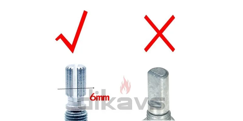 Esta perilla se acopla a un eje de 6 mm (+/- 0,3 mm).La perilla se desliza sobre el potenciómetro y se sujeta firmemente con un fuerte ajuste por fricción.