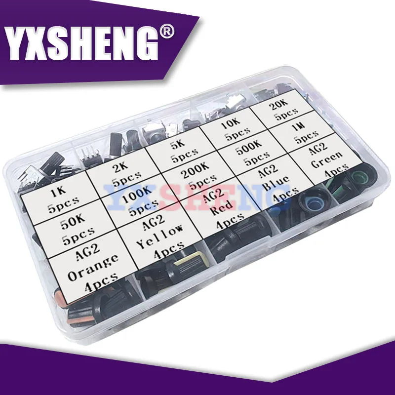 Perilla de potenciómetro rotativo de sello ajustable Vertical con Kit de caja, 70 piezas, 10 valores, RV09, 3 pines, 1K, 2K, 5K, 10K, 20K, 50K, 100K, 200K, 500K, 1M