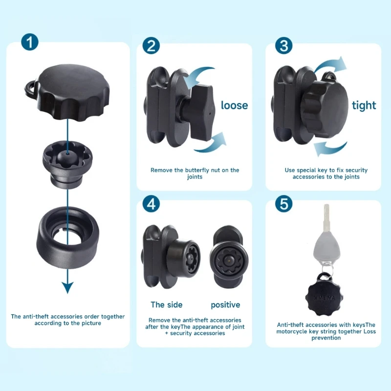 Características:OotdtyProteja el soporte del teléfono móvil de su motocicleta con nuestra perilla antirrobo duradera;