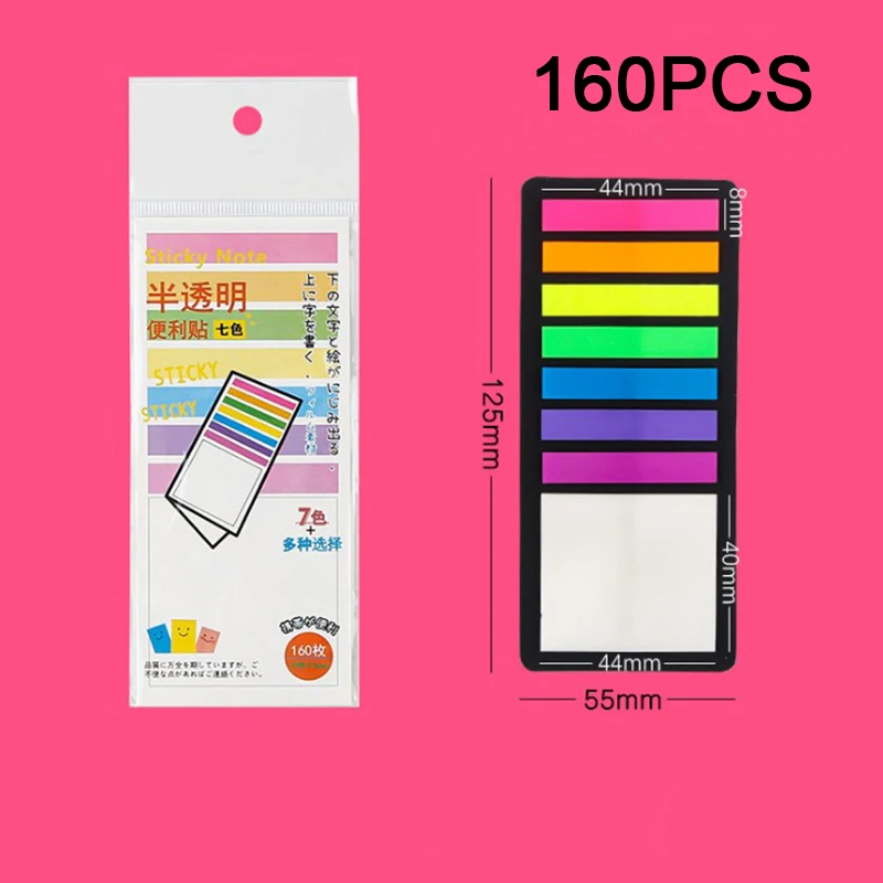 160/300 Uds. Color transparente fluorescente índice pestañas banderas nota adhesiva para marcador de página planificador pegatinas Oficina escuela papelería