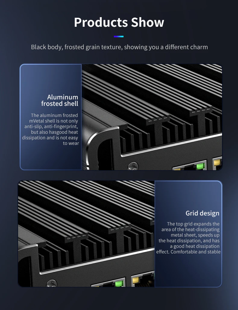 4 * tarjeta de red Intel Gigabit, 2 * USB3.0, 1 * interfaz de video, 1 * Tipo-C, 1 * DP