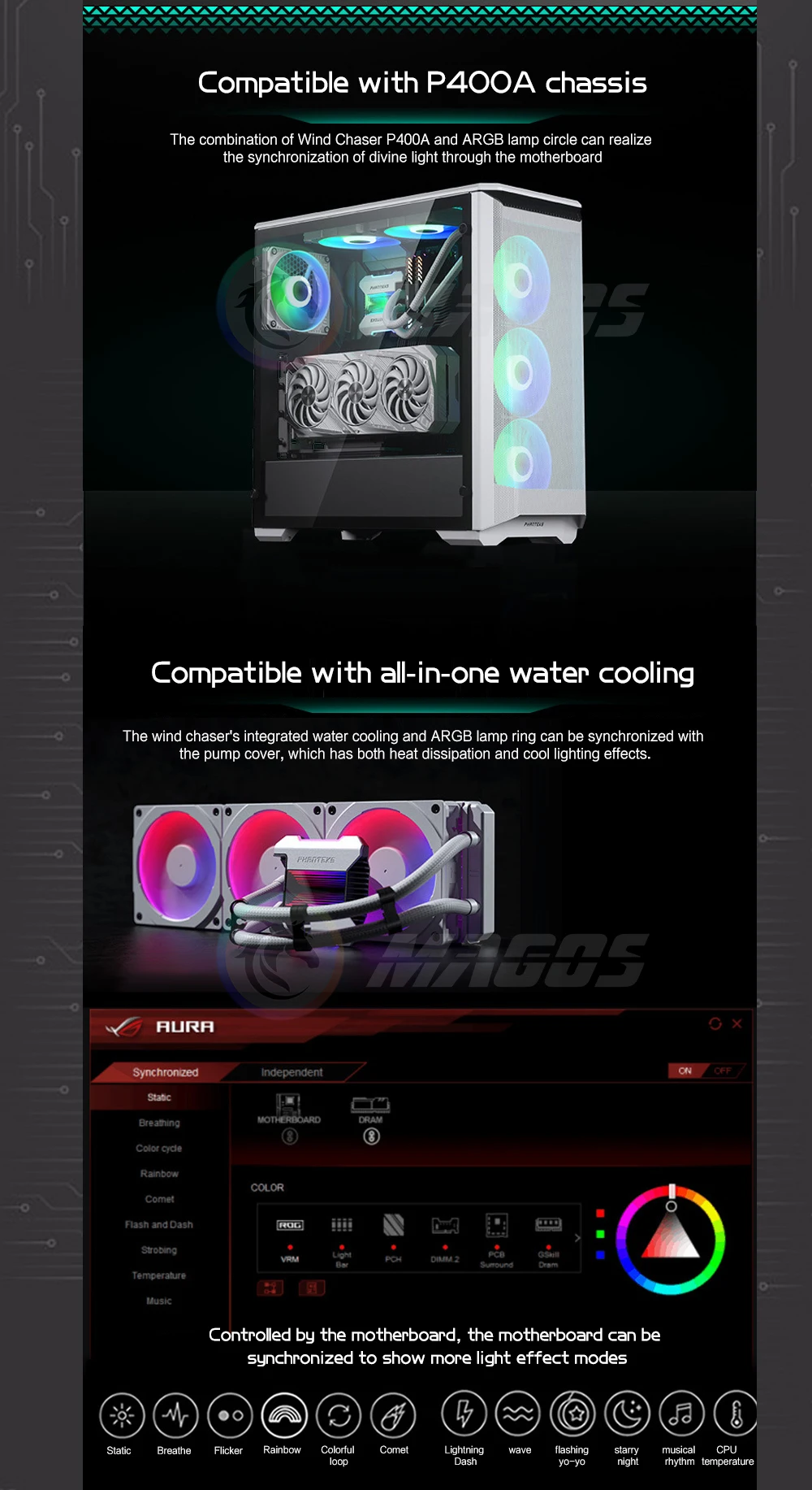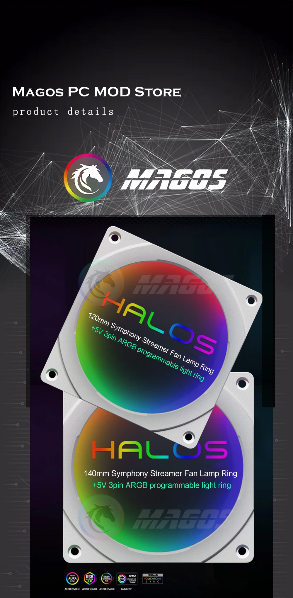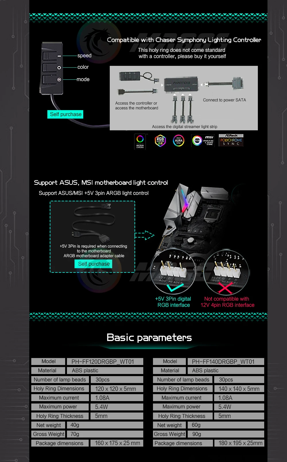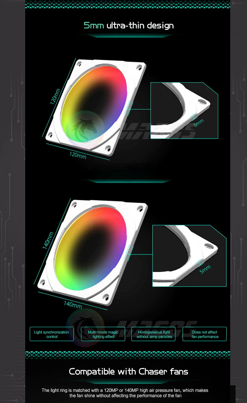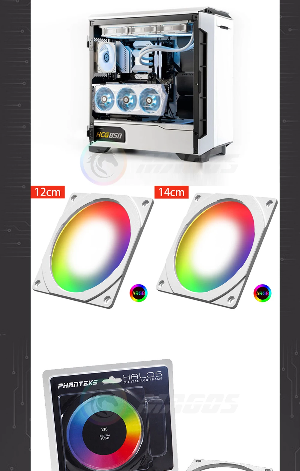 Phanteks 12CM/14CM ARGB Fan Cover,DIY PC Water Radiator Case Fan DIY Radiador Decorativo LED RGB 3PIN M/B AURA SYNC