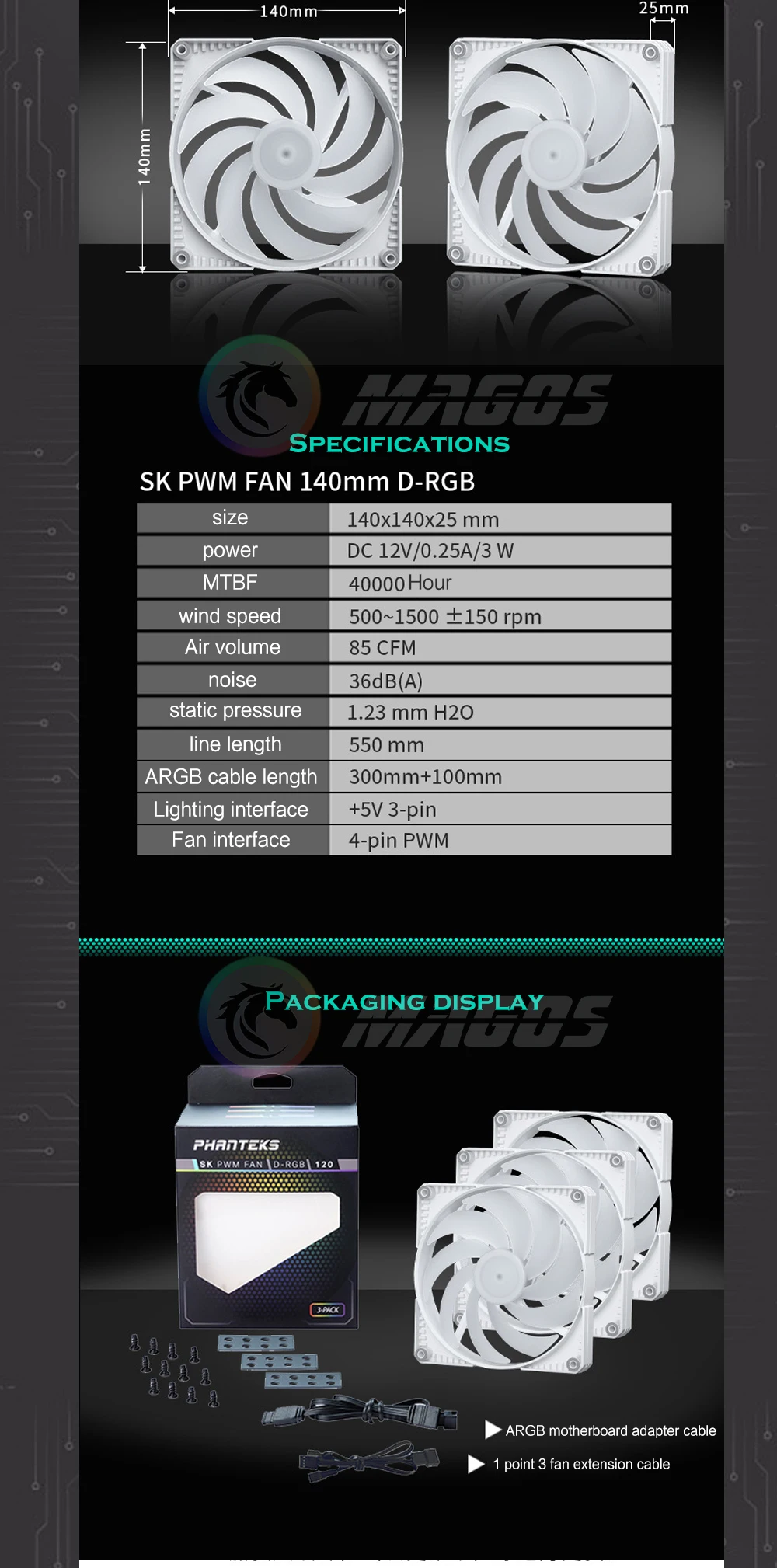 Comprar Phanteks 120MM PWM ventiladores de refrigeración silenciosos 3 uds Kit 5V 3Pin ARGB AURA SYNC CPU enfriador blanco para caja de ordenador radiador de gabinete DIY