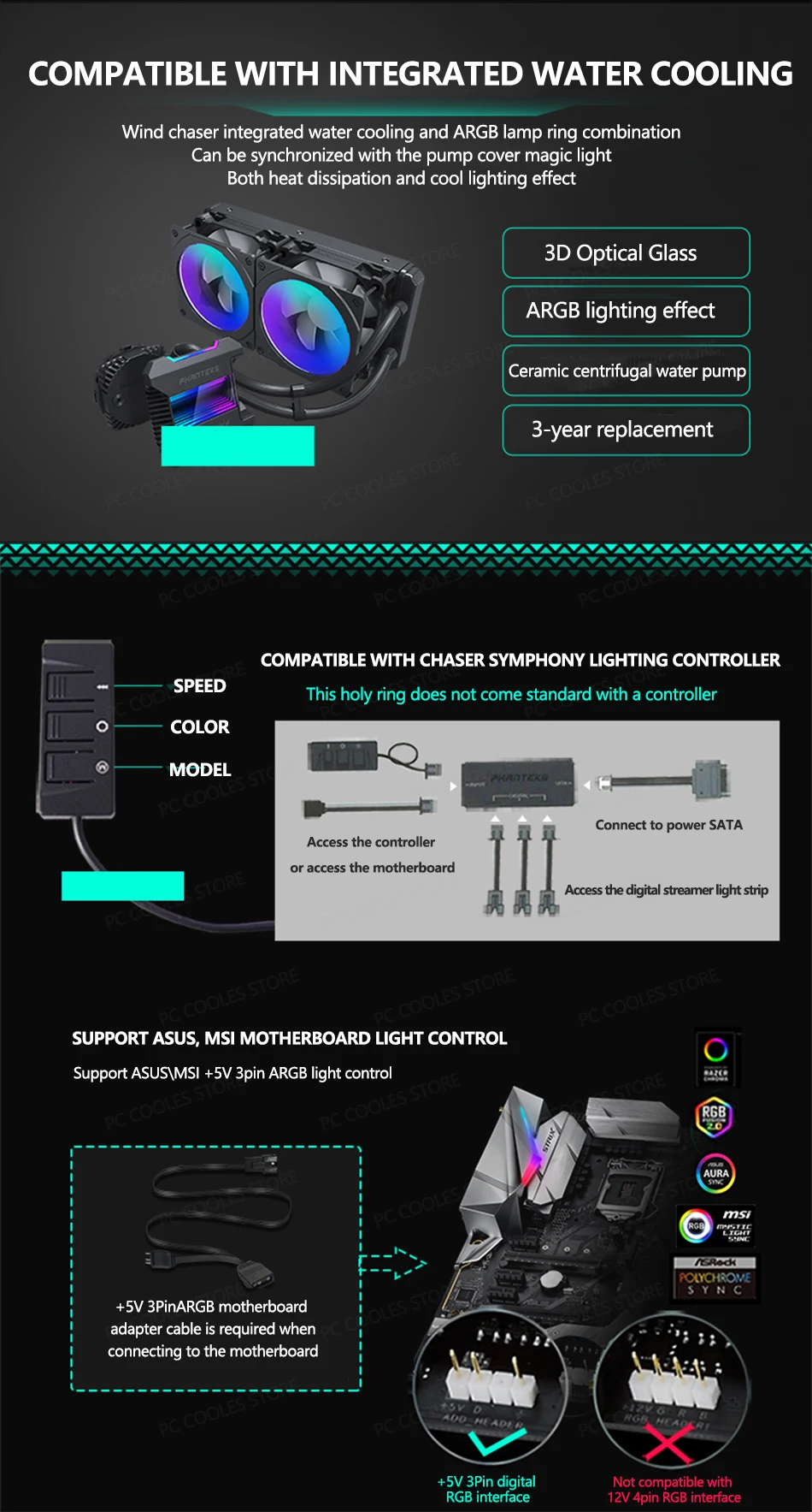 Comprar Phanteks-Anillo de aluminio Holy Ring 120mm/140mm 5V 3PIN ARGB Digital codificado Streamer Apertura de ventilador Compatible con 12cm/14cm carcasa de ventilador