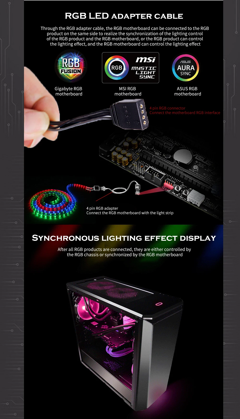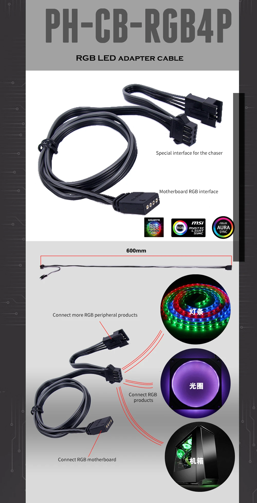 Comprar Phanteks-cable adaptador de sincronización RGB M/B, transferencia de cabezal JST-4 pines/3 pines, Cable de extensión hembra a macho