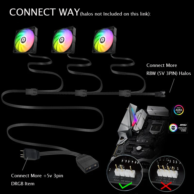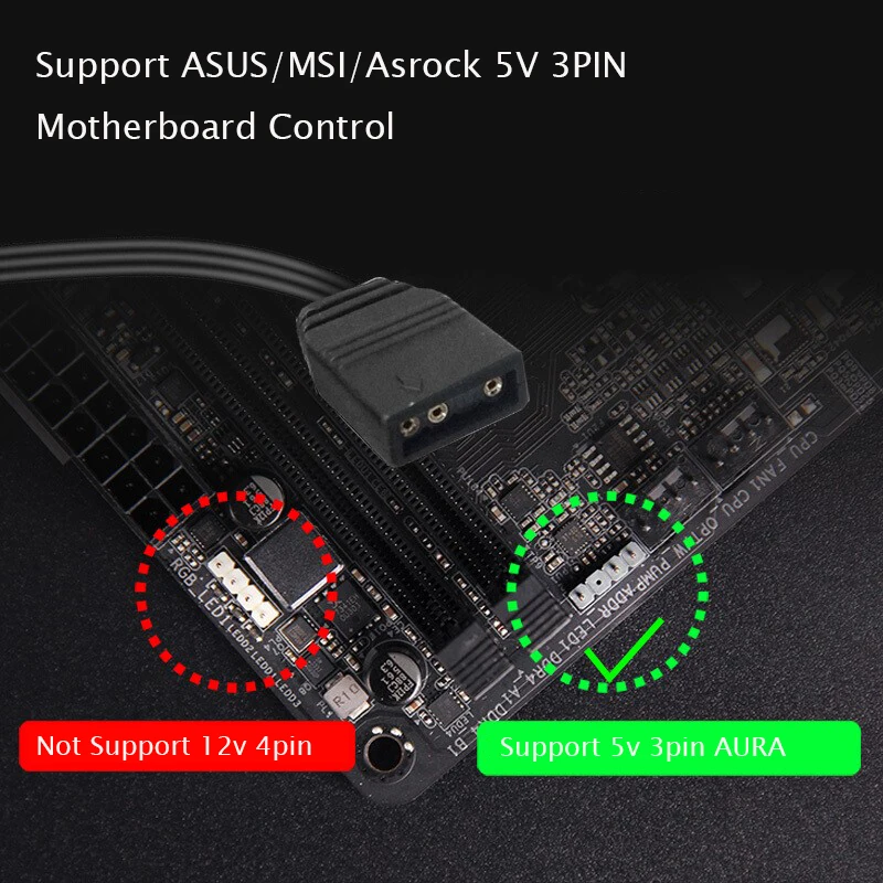 Comprar Phanteks-cable de extensión de artículos ARGB 5V 3pin AURA ASUS/MSI, divisor de placa base para 5V (ARGB Halos, tira de luz, ventilador)
