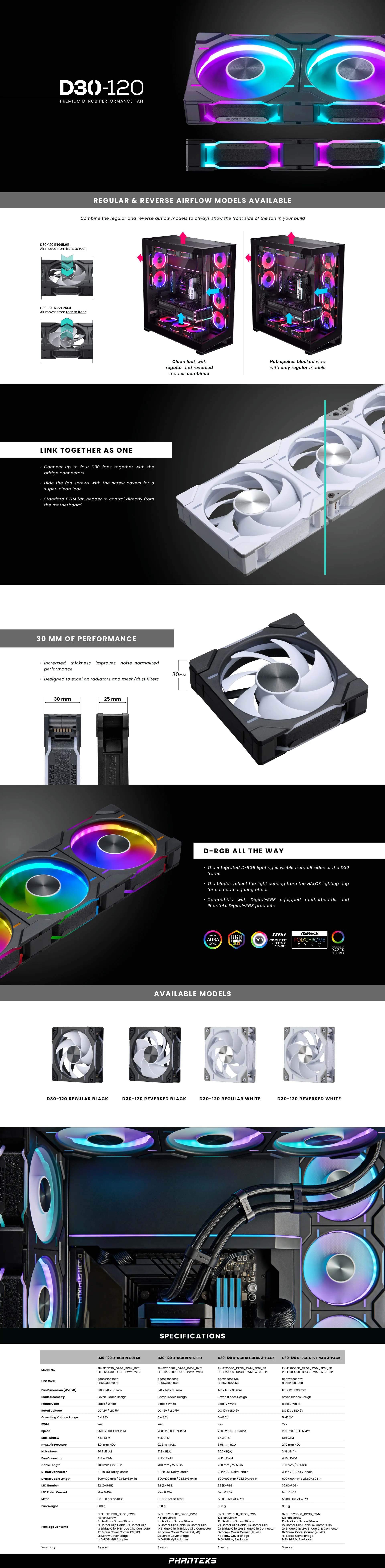 Comprar PHANTEKS D30-120 12cm ARGB ventilador de refrigeración de chasis sin empalme 30mm de espesor 7 aspas alta presión de viento ilusión de cuatro lados