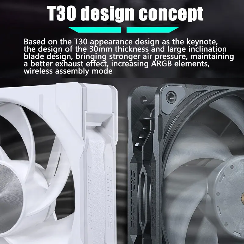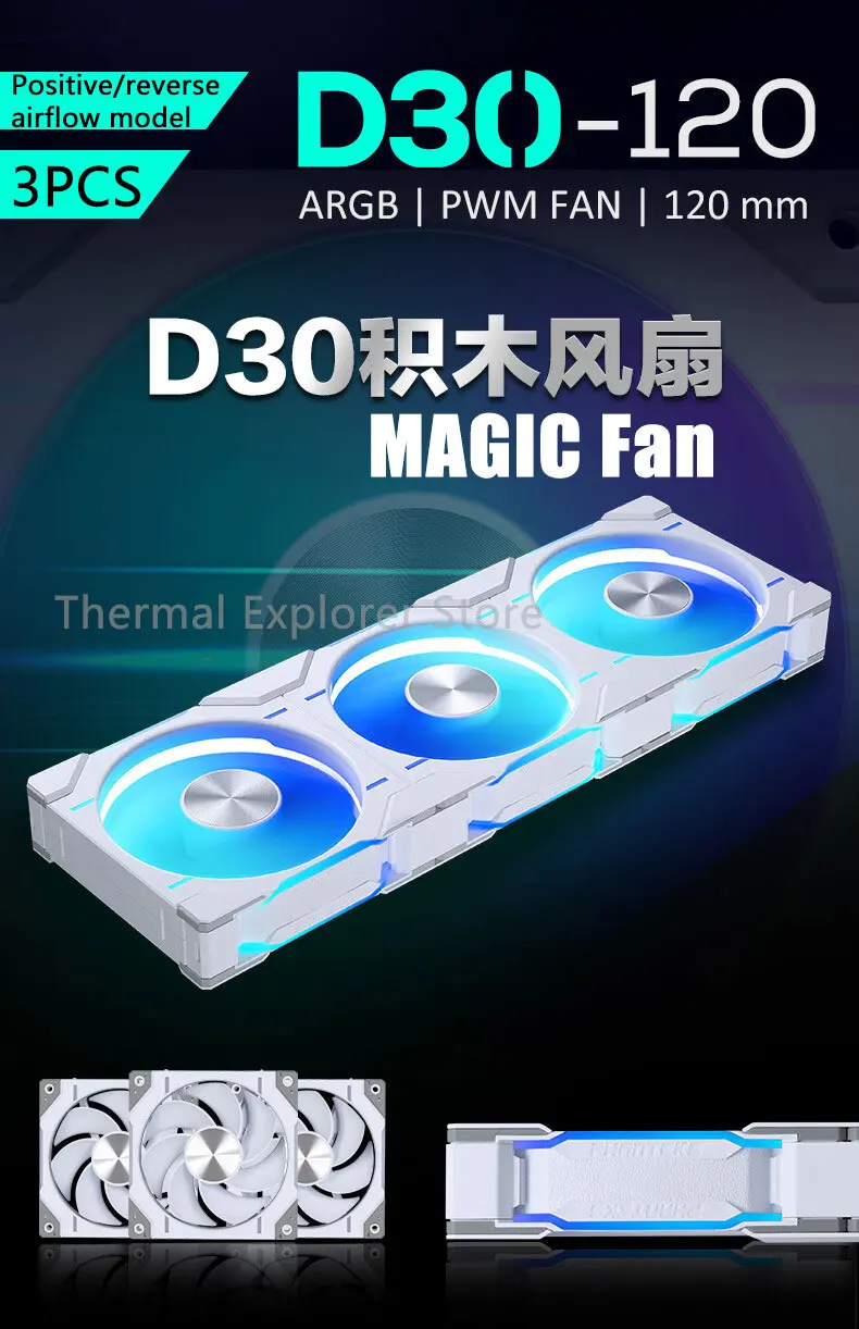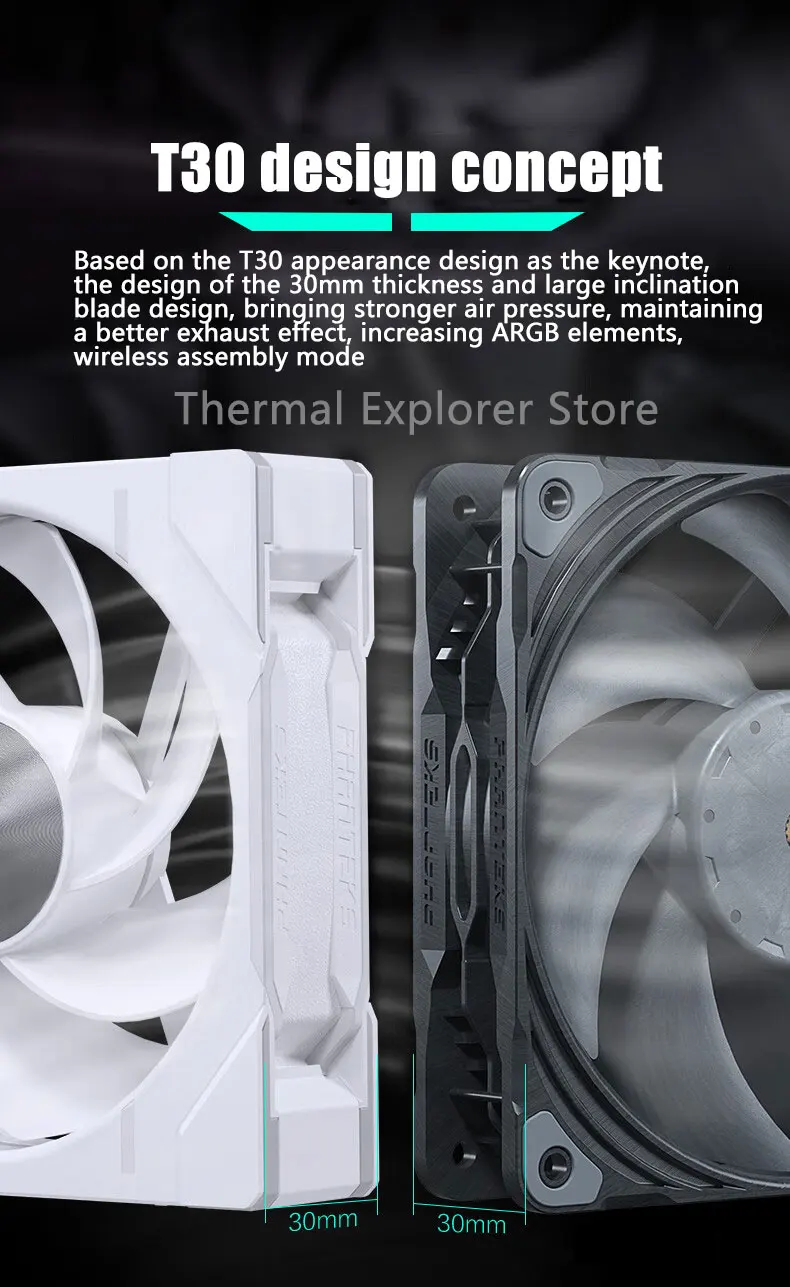 Phanteks-Funda de D30-120 para ventilador, accesorio con flujo de aire inverso, 4 pines, PWM, 30mm de espesor/cuatro lados, Color mágico, costura inalámbrica, 120mm