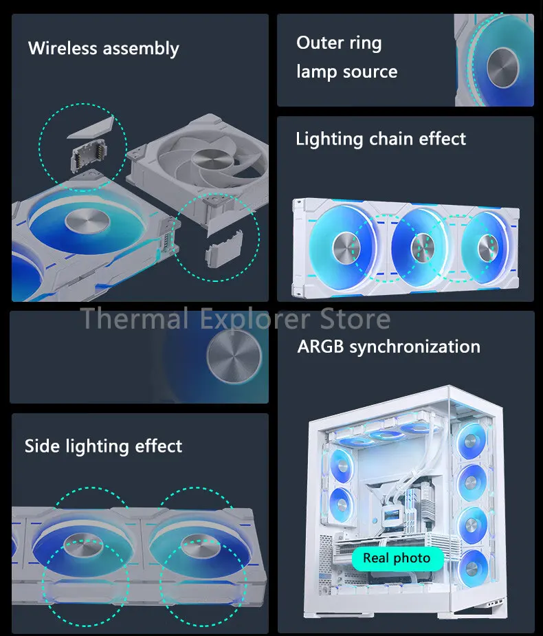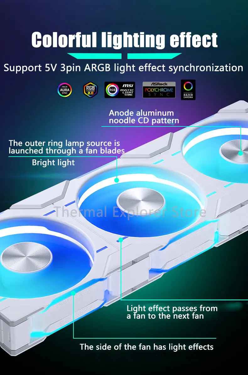 Comprar Phanteks-Funda de D30-120 para ventilador, accesorio con flujo de aire inverso, 4 pines, PWM, 30mm de espesor/cuatro lados, Color mágico, costura inalámbrica, 120mm