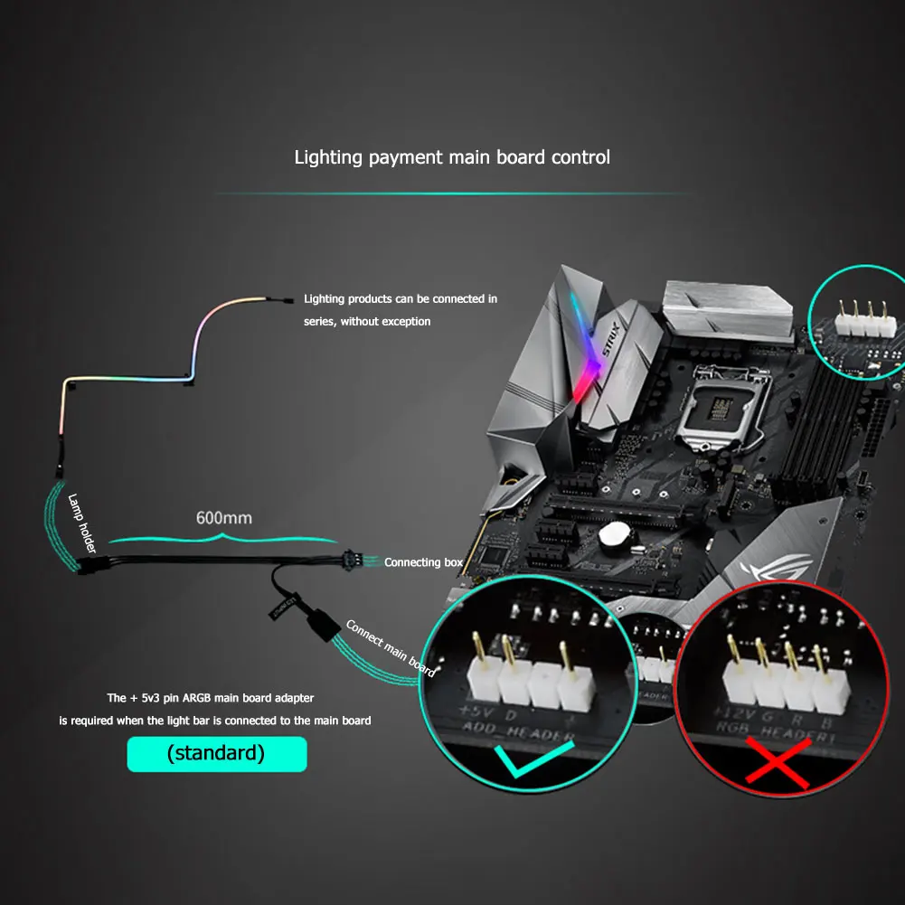 Comprar PHANTEKS-tira de luz M1 M5 CMBO, tira de luz de neón ARGB para decoración de carcasa de ordenador, 5V, 3 pines, cinta de lámpara para chasis de caja de PC, 550mm, 10